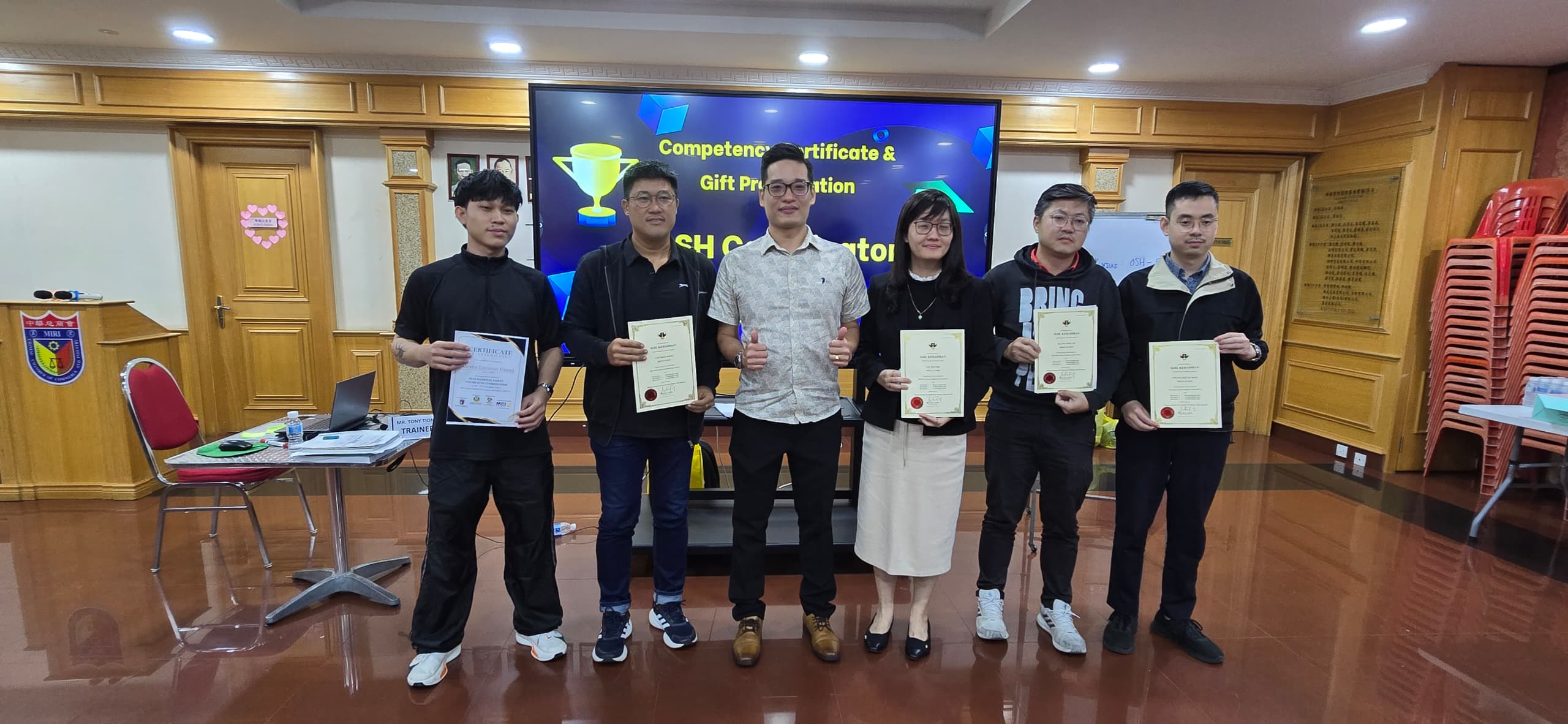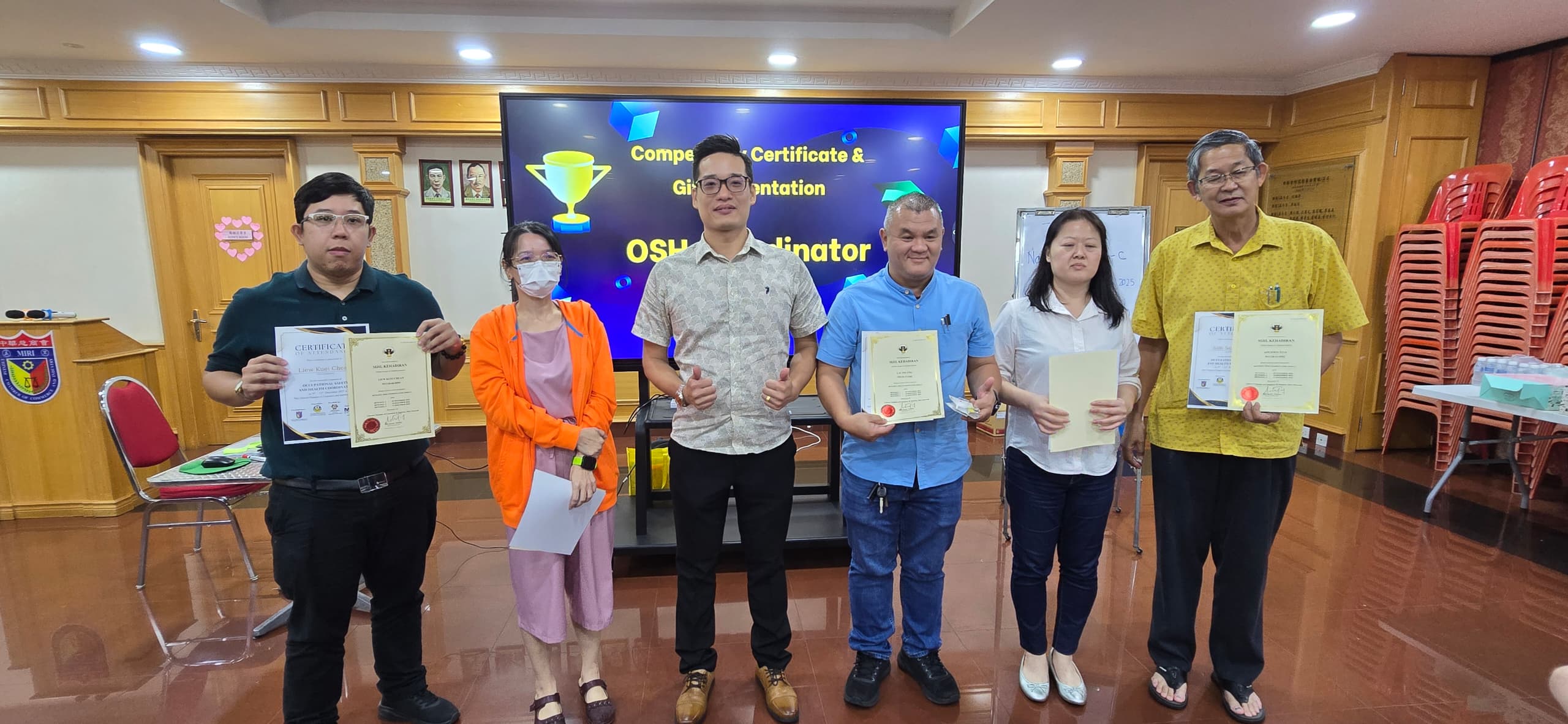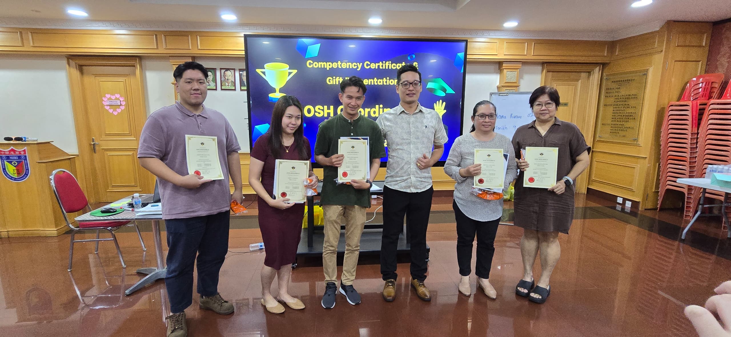 由砂中总主办、美里中华总商会协办,并由毕理学院作为培训单位,举办之首场【职业安全与卫生协调员(OSH-C)认证课程】,已于9-11.12.2025在美里圆满举行。此项课程乃获得砂拉越政府拨款,并通过SBF Recovery BizFund全额资助。